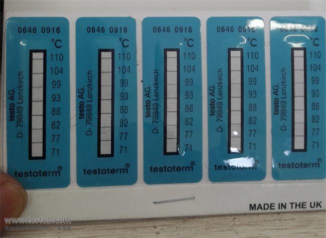 TESTO德圖溫度貼06460916溫度范圍71~110℃,精度±1.5℃,超出溫度量程2、3秒內(nèi)即可改變顏色,自帶粘性,用于移動或微小物體,運輸存儲過程中的長期監(jiān)測的理想選擇。