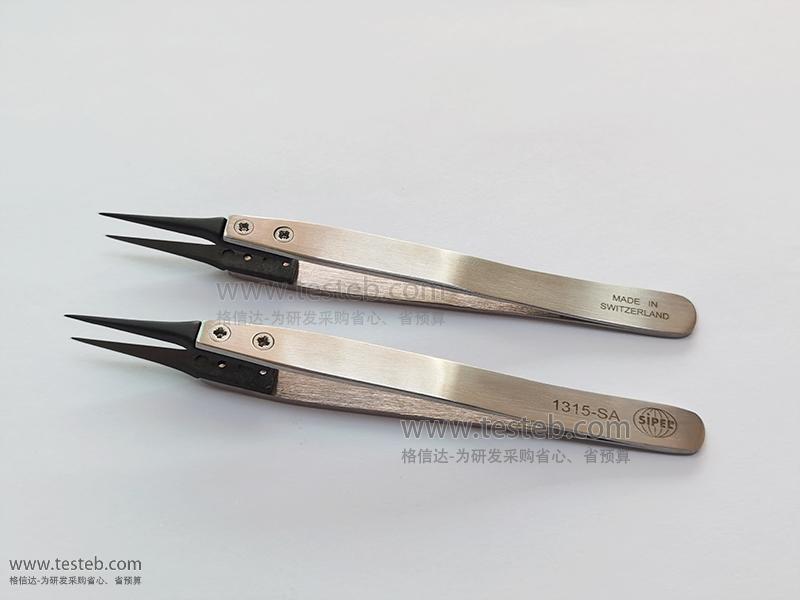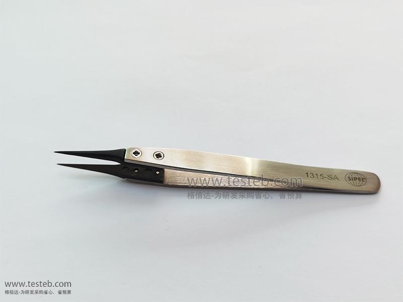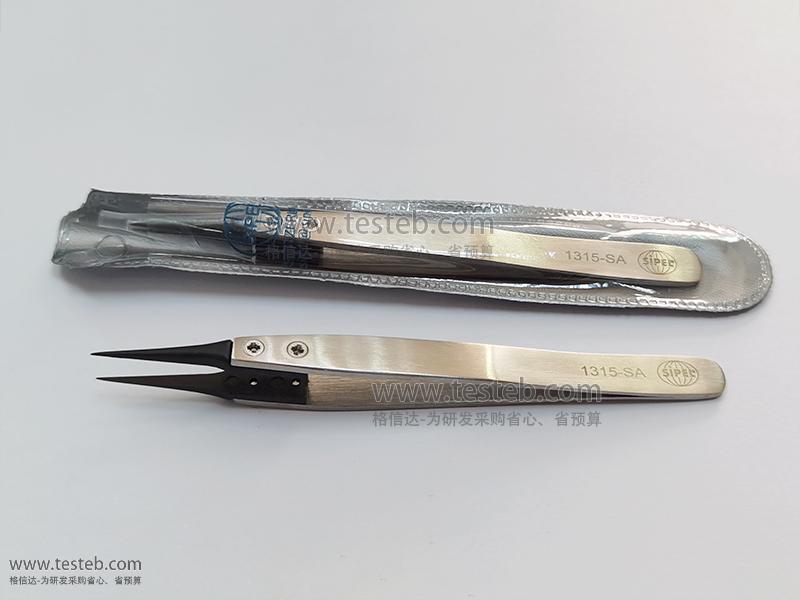 1315-SA鑷子采用不銹鋼耐酸防磁處理,頭部為黑色防靜電樹脂,僅0.3mm大小