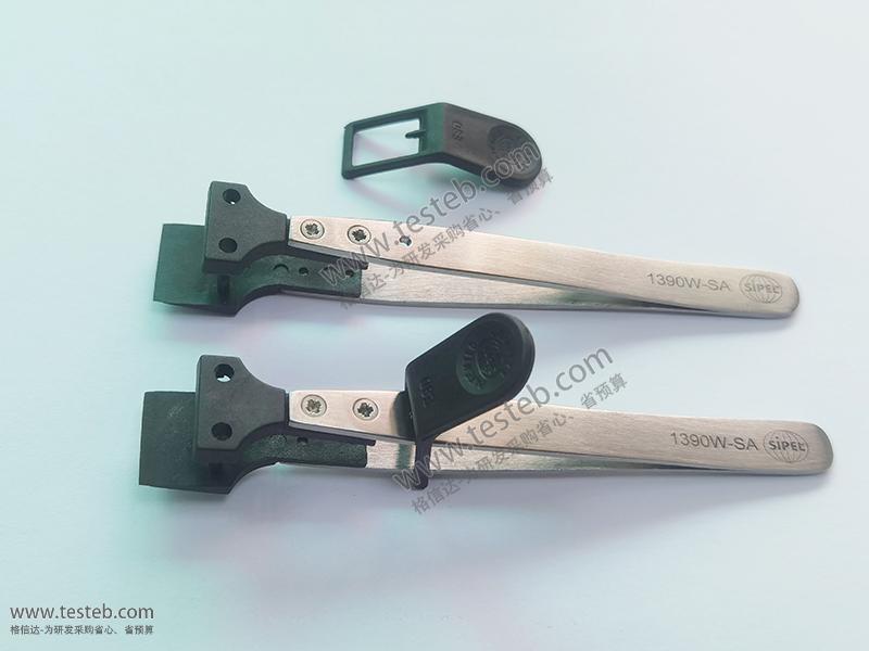 瑞士Sipel 1390W-SA晶圓鑷子適用于夾取2寸~3寸wafer硅片,抗磁不銹鋼手柄,全長115mm,頭部寬度16mm,黑色防靜電聚酯材質,可快速更換夾頭,降低成本。