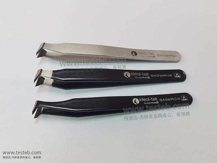 Ideal-tek Cutting Tweezers剪切鑷子用于應對高精度切割、狹小空間剪切、圓頭頂切、彎角斜切、平切操作,剪徑范圍0.25mm,精密微型尖頭,非常適合切細線如銅絲、金線、銀絲、電磁線和硬游絲。高硬度刀刃系列可用于處理高硬度高韌性醫療器械等級合金線材,如不銹鋼絲、鉑金、銅銀線、鎳鈦絲等。Ideal-tek 15AGWM(產品鑷子上印刷型號是15AGWM.C.N,包裝標簽印刷15AGWM.C.N.0.ITU代碼——N表示環氧涂層、C表示碳鋼材質)鑷剪刀刃為碳鋼,高達61-62HRC洛氏硬度,用于醫用及聲學等需要高強度及硬度剪切場合,黑色環氧樹脂涂層具有ESD防靜電及耐腐蝕性能,規格文檔說明書http://m.jwjzzs.com/download/202302/ideal-tek_15AGWM_Datasheet.pdf。
