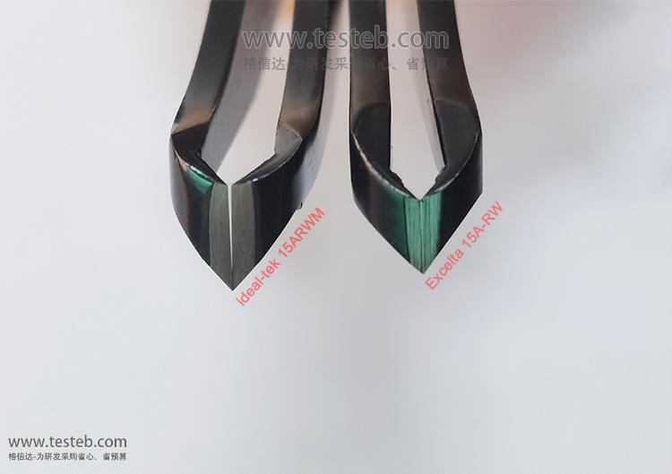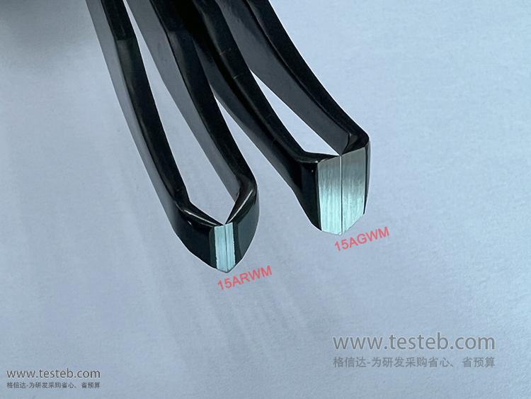 Ideal-tek 15ARWM剪切鑷子刀刃硬度高達61-62HRC洛氏度,用于醫療器械及聲學行業等需要高強度及高硬度切割場合,圓弧面窄尖頭點剪切尖部,可在狹小空間自如操作,可處理0.01mm級別細不銹鋼絲、鎳鈦絲、鉑鎢細線修絲,或者剝線皮,鑷剪握把上印刷型號是15ARWM.C.N,包裝標簽印刷字樣15ARWM.C.N.0.ITU——N表示環氧涂層樹脂涂層具有ESD防靜電及耐腐蝕性能、C表示碳鋼材質。