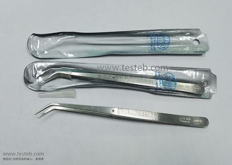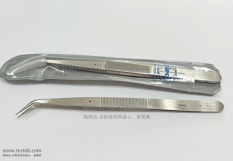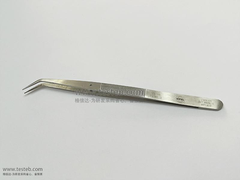 環球SIPEL 24-SA鑷子0.8mm彎尖頭堅硬且帶橫紋鋸齒,用于焊接和組裝夾持,40度彎頭提供良好的操作視野,導針防止尖部錯位,手柄握持區也是帶防滑鋸齒設計,確保操作安全,耐高溫抗磁不銹鋼材質制造,全長155mm,另有224-SA型號。