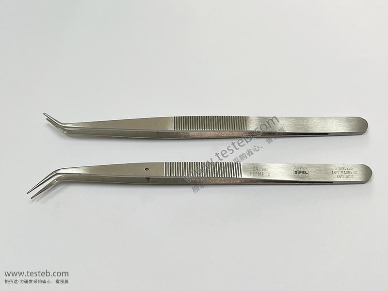 環球SIPEL鑷子包括不銹鋼系列、可替換鑷頭系列、軟樹脂塑料及剪切鑷子系列。不銹鋼系列種類規格眾多,形狀有尖細頭,粗硬直頭、平頭、圓頭及彎頭等,可應對大多數常見夾取或彎曲應用,部分型號尖部內含鋸齒狀條紋提高操作的安全穩固。瑞士Sipel 24-SA鑷子全長155mm,40度彎尖頭內含鋸齒厚實堅硬可牢牢夾持部件進行焊接和組裝,導針防止尖部錯位,手柄握持區也是帶防滑鋸齒設計,確保操作安全。