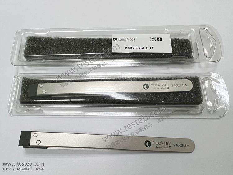 進口瑞士Ideal-tek 248CF.SA鑷子采用增強塑料碳素纖維材質尖部,具有良好的熱穩定、耐化學性和極高的剛性,出色的耐磨性,低摩擦自潤滑性能使其可以用來處理敏感元件而避免造成損傷,ESD防靜電安全。鑷子粗尖部寬度10mm x 厚度0.9mm,頭部固定組裝無法拆換以確保對準精度。另有可替換頭系列249CFR.SA、259CFR.SA等,通過更換鑷子頭重復利用可降低使用成本。248CF.SA鑷子規格文檔http://m.jwjzzs.com/download/202302/ideal-tek_248CF.SA_Datasheet.pdf
