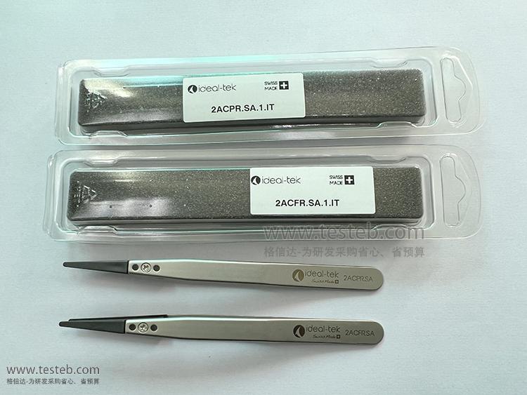 瑞士Ideal-tek鑷子具有種類繁多、精密的塑料鑷子,方便用戶在不同應用中選擇相應材質。CF碳素纖維樹脂材質具有低摩擦和自潤滑性能,良好的熱穩定性,ESD防靜電安全,非常適合用來夾取敏感電子元件、芯片、玻璃和陶瓷基板等。CP高性能PEEK聚醚醚銅具有非常出色的耐化學品和耐腐蝕性能,用于清潔、化學溶劑環境、組裝過程中處理元件,耐高溫300℃,ESD安全,高硬度耐磨,如ideal-tek 2ACPR.SA鑷子尖頭寬2mm,扁圓頭用于夾取較大元件及組件,非磁性不銹鋼手柄,全長130mm,通過購買更換一對2片PEEK塑料鑷子頭A2ACP可降低重復使用成本。
