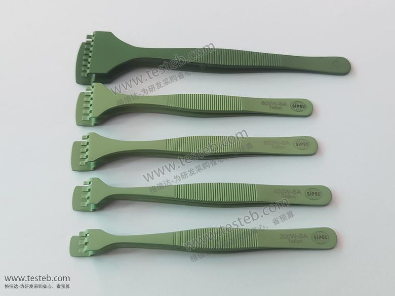 環(huán)球Sipel 300W-SA-TE晶圓鑷子不銹鋼材質(zhì)主體,表面具有一層綠色TEFLON特氟龍涂層使其具有耐酸防腐蝕、無痕防損性能,用于3寸wafer硅片安全夾取轉(zhuǎn)移,頭部上端帶3個齒爪、下端臺階止擋,手柄帶鋸齒確保操作安全穩(wěn)固,另有3寸、4寸、6寸、8寸系列晶圓硅片鑷子。