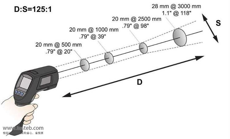 125:1距離系數比可以提供更小的光斑尺寸以測量更小的目標