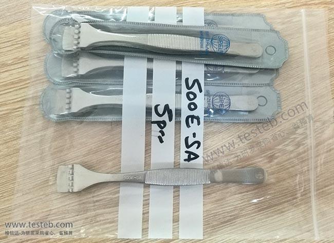 瑞士Sipel 500E-SA晶圓鑷子頭部寬16mm,上端5個齒爪、底端帶限位柱止擋,用于夾持5寸晶圓WAFERS。另提供特殊規格涂層擴展型號,如表面鍍有TEFLON特氟龍涂層可防止夾傷,耐酸堿,工作溫度達280℃,后綴TE如500W-SA-TE;HTC High temperature Coating高溫涂層工作溫度可達620℃,如400W-SA-HTC高溫鑷子。
