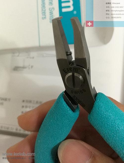 瑞士EREM 530E08剪鉗用于剪切銅線引腳并保留0.8mm固定長度,采用特殊工具鋼材質,打磨過的鉗頭頂部,減小對于元件的機械沖擊,以防止損壞線路板,防靜電手柄,人體工程學設計,操作安全舒適。