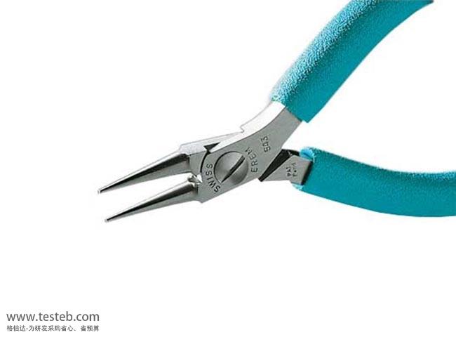 EREM 543E彎線鉗適用于導線的成形、彎曲、放置和插入,采用非常精密光滑圓形鉗口,寬度僅0.8mm,鉗子總長120mm,高等級工具鋼材質制成,具有防靜電塑料手柄。