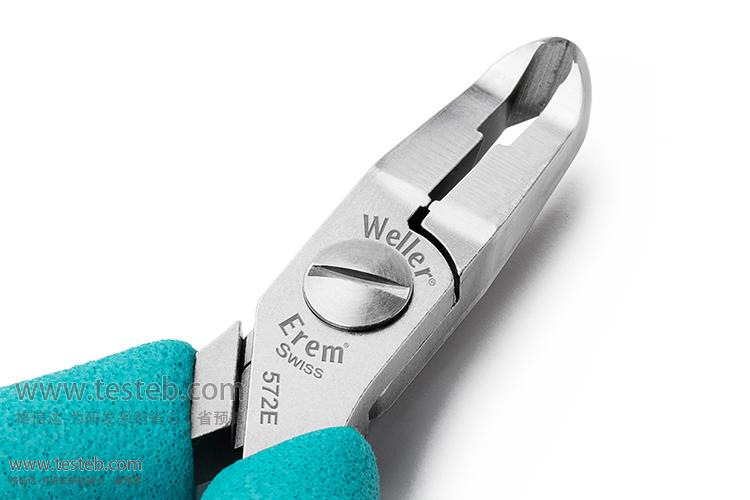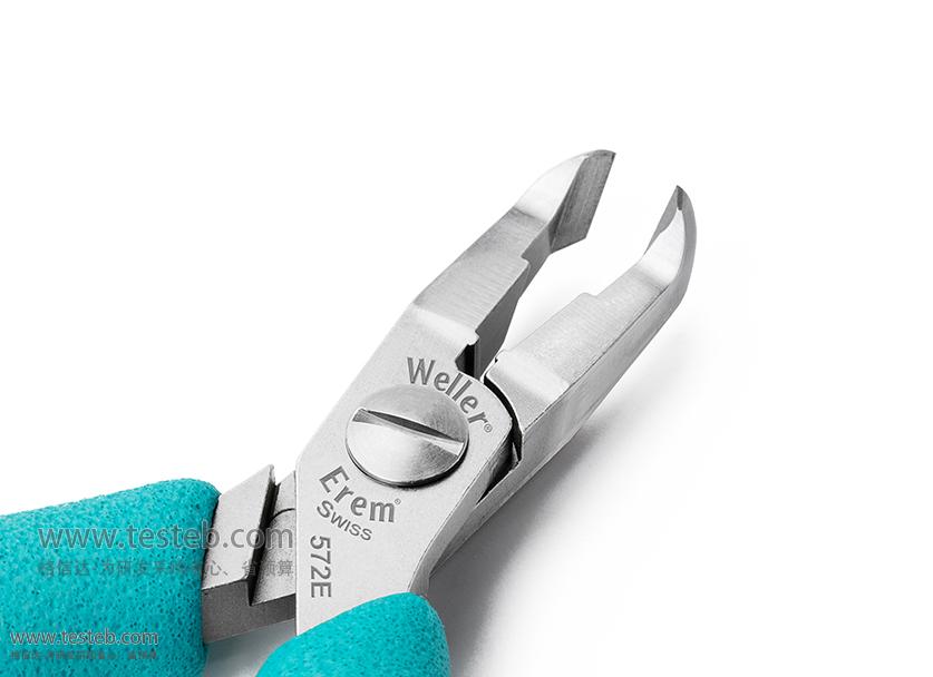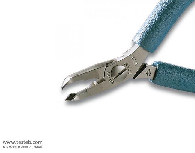 瑞士Erem 572E彎頭鉗尖部成40度彎曲,具有逐漸變小的剪切邊緣,便于接近狹小區域操作,可剪切0.6mm中等硬線和1.3mm銅導線引腳,剪鉗切口齊平,帶防靜電手柄。