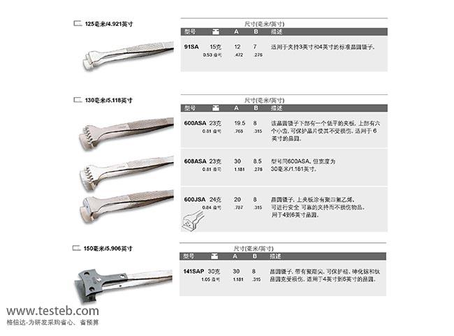 | 600ASA | 寬19.5mm,6個齒 | 該晶圓鑷子下部有一個低平的夾板,上部有六個小齒,可保護(hù)晶片使其不受損傷,適用于6英寸的晶圓 |