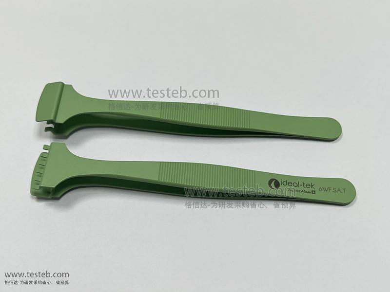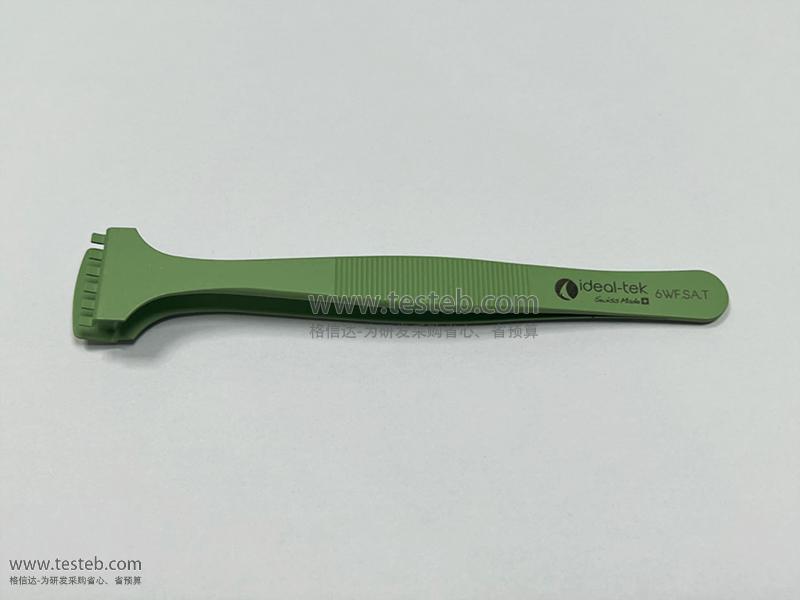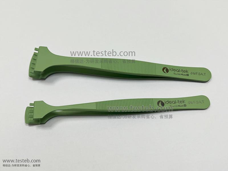 瑞士士ideal-tek 6WF.SA.T晶圓鑷子為抗磁耐酸不銹鋼材質,表面綠色特氟龍Teflon涂層處理,具有低摩擦無痕防損性能及耐腐蝕特性,不受溫和化學環(huán)境的影響,對稀酸、稀堿和濃堿以及有機溶劑有良好的耐受性,鑷子頭部上端6個爪、底部臺階止擋寬度12mm,用于6寸wafer硅片夾取。