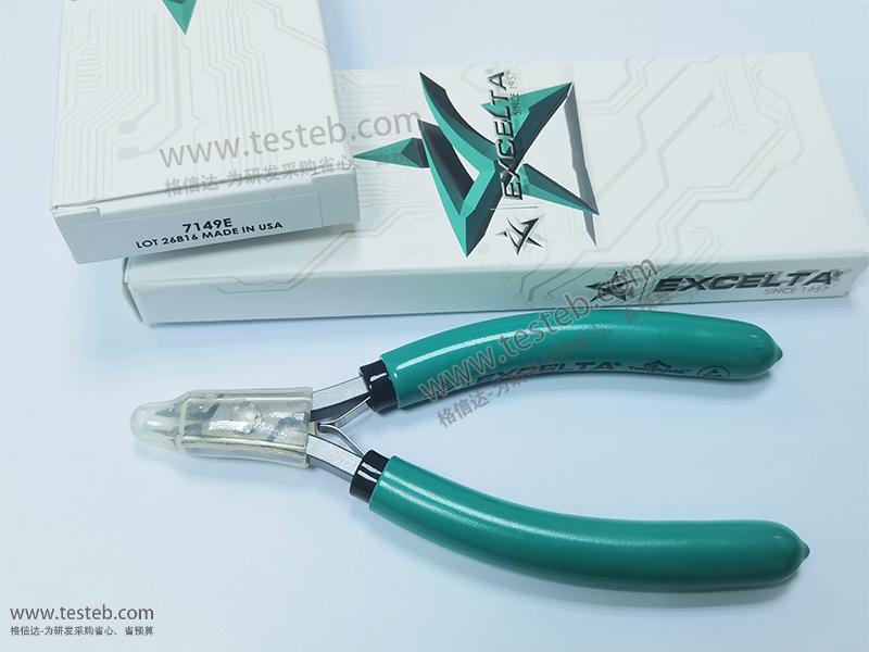 EXCELTA 7149E尖口剪鉗刀刃經過感應淬火硬化具有63-65HRC洛氏硬度,剪徑范圍0.63mm/0.025英寸,超齊平剪切效果,尖錐形減壓緩沖小鉗頭Tapered/Relieved Fine Tips,可在狹小空間進行精密操作,質量等級5星,全長143mm,ESD防靜電雙色軟手柄。