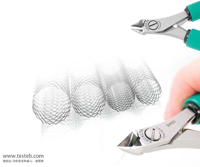 EXCELTA 7241EHT剪鉗采用碳化鎢硬質(zhì)合金剪切邊,可對0.015英寸/0.38mm高硬度高韌性導(dǎo)線精確齊平剪斷,應(yīng)用于醫(yī)療器械導(dǎo)絲、支架、不銹鋼編織網(wǎng)等線材處理,鉗子全長120mm,雙色防靜電泡沫塑料手柄,質(zhì)量等級5星。