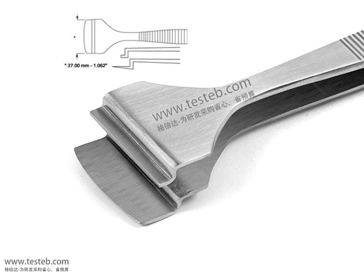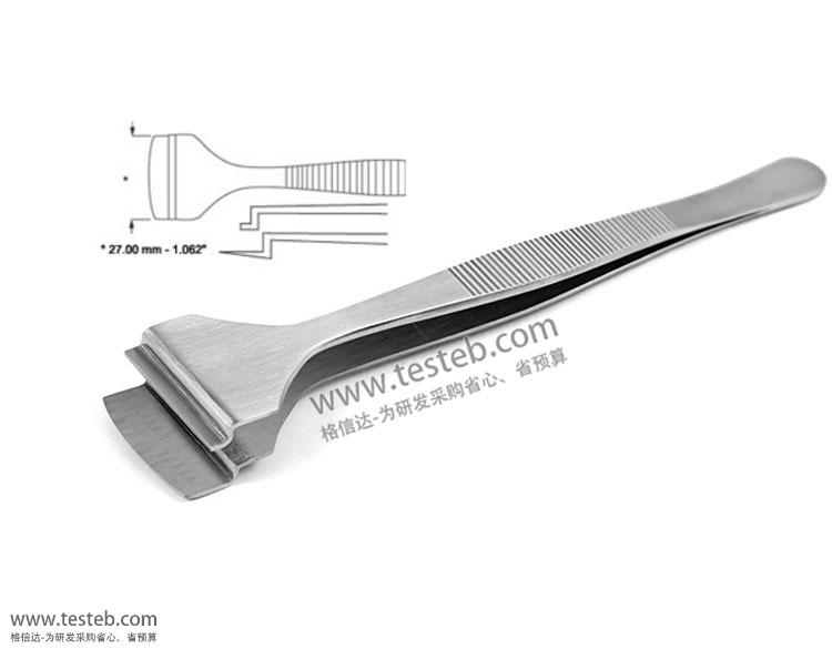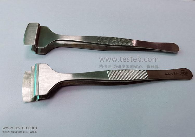 Sipel 800A-SA晶圓鑷子頭部寬度27mm,上下夾頭均為平面臺階狀,適用于8英寸wafer硅片夾取轉移,對于較厚的片子可牢牢緊密夾持,另有上頜帶8個齒爪、下頜臺階止擋的800W-SA、耐酸防克損的800W-SA-TE特氟龍涂層款。