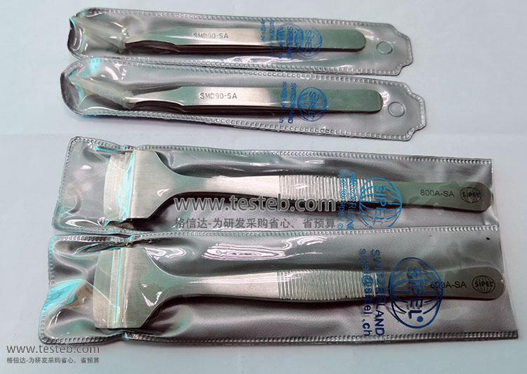 瑞士Sipel WAFER鑷子不銹鋼材質系列提供多種頭部形狀,針對不同類型尺寸的硅晶芯片夾取特點而設計,分為上下平板狀、上下臺階狀A(800A-SA晶圓夾)、帶爪及止擋柱型E(500E-SA)、上部臺階底板平帶限制止擋住型GB(600GB-SA)、鐵氟龍夾片型J(600J-SA)、上頜帶爪下頜臺階止擋型W(600W-SA)、上頜帶爪下頜臺階止擋并漏孔WG(500WG-SA),鋸齒形握把手柄保證握持操作安全。Sipel 800A-SA晶圓鑷子上下部均為平面臺階狀,適用于8英寸wafer硅片夾取轉移,對于較厚的片子可牢牢緊密夾持安全轉移。