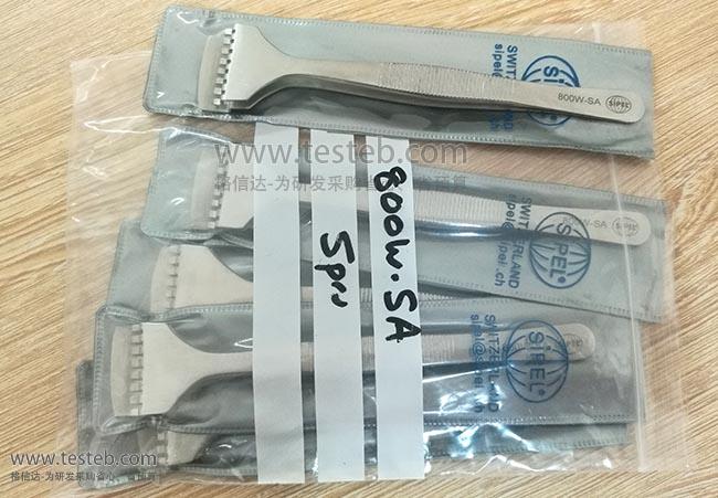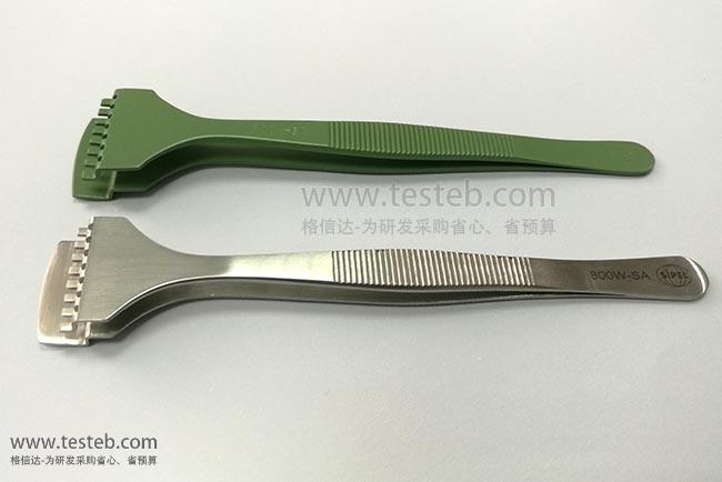 SIPEL WAFER鑷子不銹鋼材質系列提供多種頭部形狀,針對不同類型尺寸的硅晶芯片夾取特點而設計,分為上下平板狀、上下臺階狀A、帶爪及止擋柱型E、上部臺階底板平帶限制止擋住型GB、鐵氟龍夾片型J、上頜帶爪下頜臺階止擋型W、上頜帶爪下頜臺階止擋并漏孔WG,鑷子手柄帶有鋸齒保證握持安全。