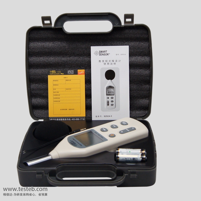 噪音儀SMART?,擜R824數字式噪音計30~130dB 模擬棒條動態顯示,?,擜R824分貝儀高精度4分頻段測量 30*50mm大屏幕LCD顯示。