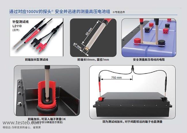 日置BT3564電池測試儀使用1000V的探頭選件能安全、輕松的測量高壓電池組