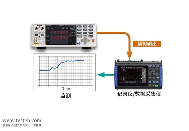 搭載電阻測量值的模擬輸出功能,通過記錄儀和數(shù)據采集儀組合實現(xiàn)長時間監(jiān)測