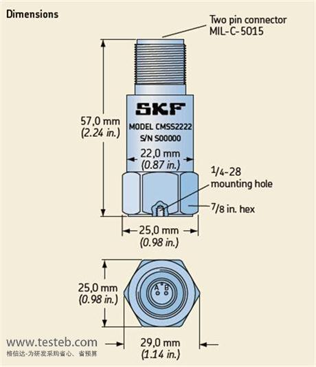 斯凱孚SKF傳感器CMSS2222測振動態范圍100 mVg,精度±10%,頻率范圍及精度2Hz ~1 kHz,±5% (–3dB at 0.8 Hz),橫向靈敏度< 5%。CMSS 2222振動傳感器可承受最大沖擊5000g,防護等級IP 67,工作溫度范圍- 55至140°C。
