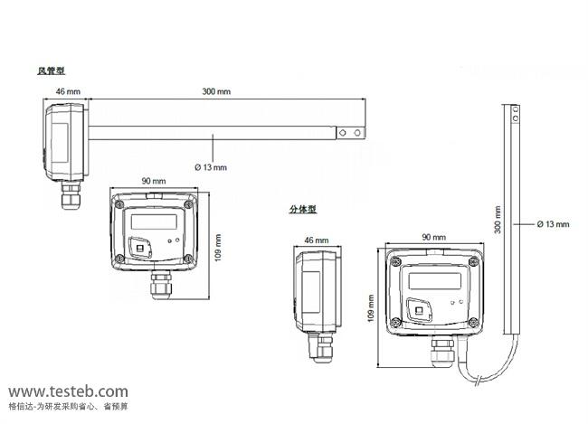CTV115風速變送器探頭長度300mm,分體式探頭電纜長度 2m、5m或10m