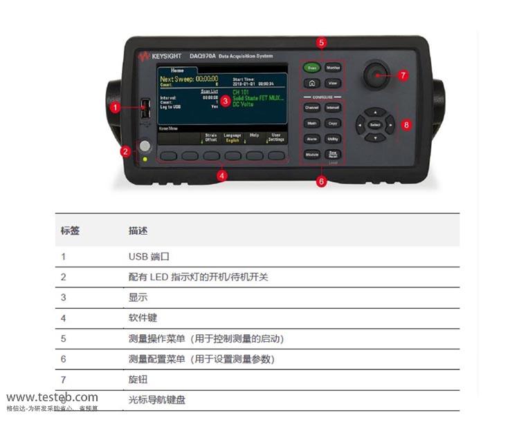 是德科技DAQ970A采集器可測量和轉換14種不同的輸入信號,4.3英寸大型彩色顯示屏,易于設置和查看數據