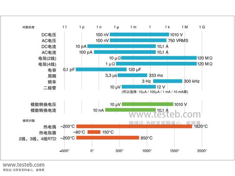 DC電壓100 nV~1010V,AC電壓100 nV-750 VRMS