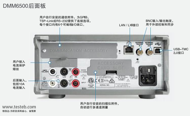 標配USB-TMC和LXI/ 以太網通信接口,可選配GPIB、TSP-Link®和RS-232