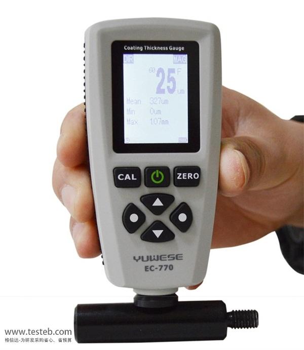 宇問EC770數字涂層測厚儀具有待測材料自動識別功能, 可自動識別鐵磁材料并選擇鐵基模式進行, 如測量鋼質/鐵質/導磁合金材料表面油漆或鍍層厚度;若待測金屬為非磁性材質, 儀器將自動選擇鋁基模式, 如測量銅/鋁/鋅/錫等材料的油漆/氧化膜/塑料厚度。EC-770涂層測厚儀圖形菜單操作界面, 讓您更加方便快捷的設置和操作,并且可以進行不間斷連續測試,滿足了快速線性尋找產品鍍層缺陷的要求,可替代時代TT210、TT220、TT260等使用。