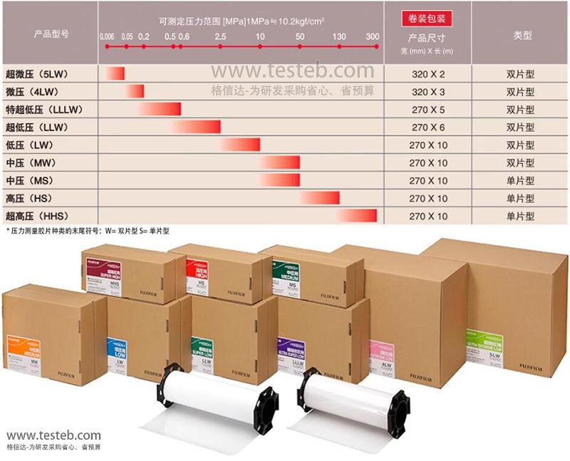 Fujifilm Prescale單片型中壓MS和超高壓HS感壓紙可測量壓力范圍1MPa至120MPa,精度根據密度值的變化而變化,誤差為±10%或者更低,可用于檢測調節汽車各個部件的壓力分布和平衡。
