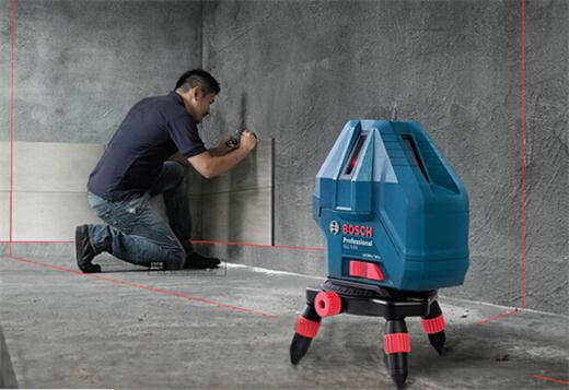 德國博世GLL5-50標線儀工作范圍15m,使用接收器的工作范圍 (半徑)可達到50米,調平精度± 0,2 mm/m,是專業型5線高精度水平儀,具有獨特的可拆分底坐容易攜帶,多種選擇的激光線和擺放方式。