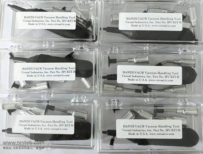Virtual HANDI-VAC系列IC真空吸筆套裝HV-KIT-B包含3.18mm、6.35mm、9.53mm共4個吸筆頭無痕吸盤,防靜電消散級別,耐高溫120℃,通過手動擠壓橡膠氣囊產生真空從而吸取和釋放器件,操作簡單,廣泛應用于半導體、微電子等行業。