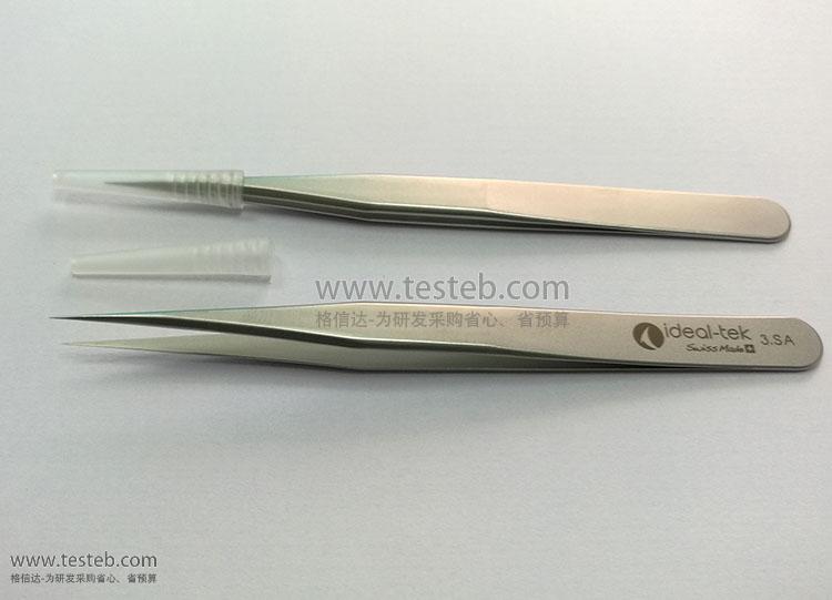 ideal-tek鑷子3.SA具有0.15mmx0.10mm尖頭,非常鋒利尖細very sharp fine,長度120mm,采用低碳奧氏體不銹鋼打造,具有不可磁化、非磁性和良好的耐酸堿腐蝕性,可操作溫度達350℃高溫,18HRC硬度,典型用于中等侵蝕性化學環境中的電子行業用、鐘表珠寶及實驗室和醫療應用。