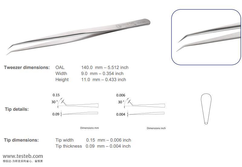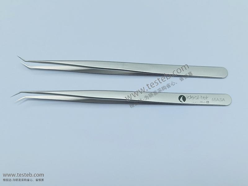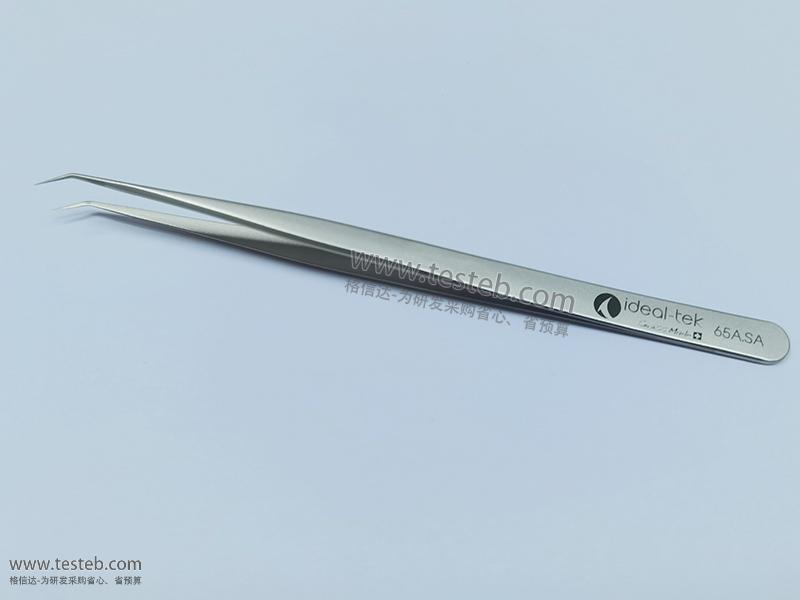 ideal-tek 65A.SA鑷子具有0.15mm精細彎尖頭,可在狹小空間精細夾持操作金絲細線、微芯片等小物體,30度彎頭設計具有良好的操作視野不會被前方遮擋,低碳奧氏體材質具有非磁性及耐高溫耐酸特性,全長140mm,swiss made瑞士制造。