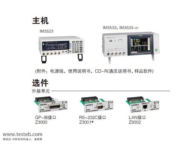 日置IM3533/IM3533-01:包含主機、電源線、使用說明書、CD-R(通訊說明書,樣品軟件)