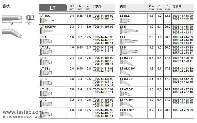 所有weller烙鐵頭中,LT系列銀線發(fā)熱焊咀體積小,價格低,導熱性能好。LTB烙鐵頭可配套用于WP 80焊筆、WSP 80、MPR 80、FE 75、TCP焊筆,適用于各種SMD和THT焊接應用,具有高效的熱量傳遞,適用于小或大的熱需求量,可快速溫升與回溫。