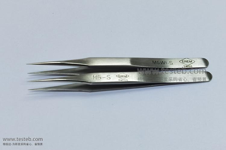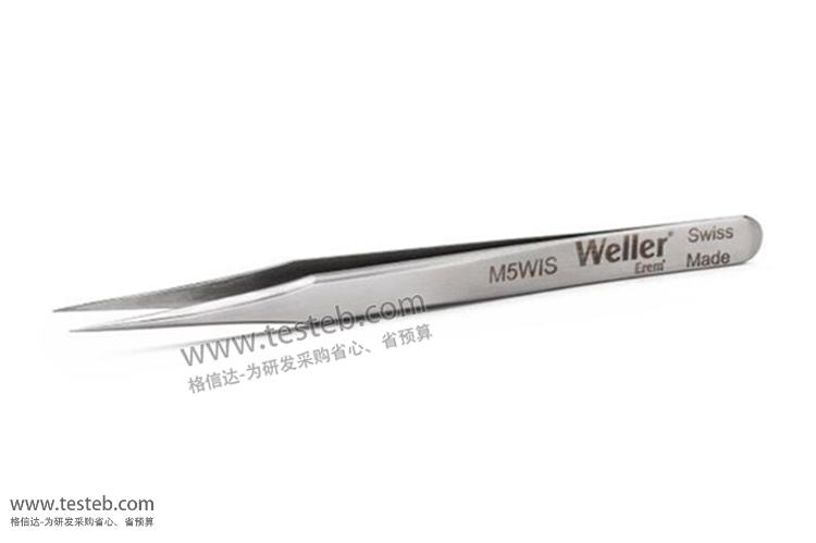 Weller威勒旗下瑞士Erem M5WI-S顯微鏡鑷子外形尺寸與M5-S相同但尖部內有小半徑以避免損壞線材軟簧部件slight radius inside the tips to avoid damaging the threads,0.2mm尖頭非常細,適用于顯微鏡下精細操作微電子元件或導線,耐酸耐熱不銹鋼材質,Swiss Made瑞士制造。
