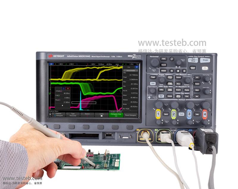 是德科技KEYSIGHT MSOX3014G示波器100MHz測(cè)試帶寬,4個(gè)模擬通道+16數(shù)字通道全2.5G采樣率,4Mpts存儲(chǔ)器和100萬波形/秒的捕獲率,具有進(jìn)行通用電子設(shè)計(jì)所需的各種功能和軟件,獨(dú)有的區(qū)域觸摸觸發(fā)技術(shù)讓您只需幾秒鐘便可輕松隔離信號(hào),非常適合用于研發(fā)調(diào)試、低速串行設(shè)計(jì)和測(cè)試以及電源完整性測(cè)試。