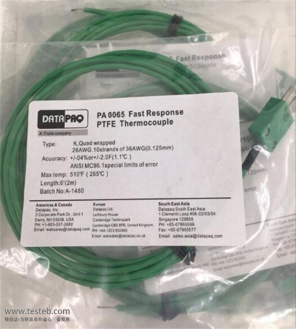 DATAPAQ PA0065熱電偶探頭用于ET6061A、ER6061A爐溫儀,測量記錄爐溫溫度曲線,PTFE絕緣電纜,最高溫度265℃,線長2m,K型外露式熱電偶焊點。