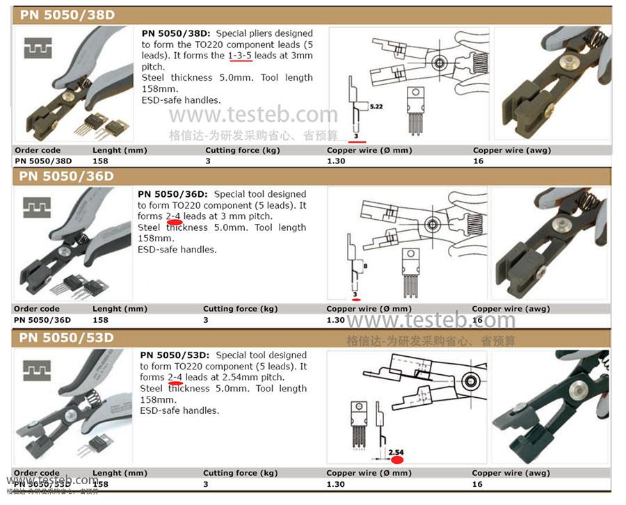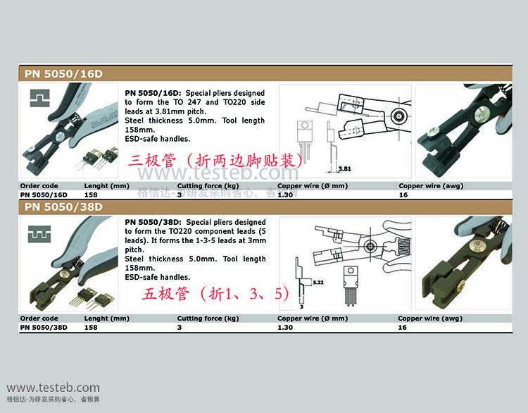 PN-5050/17D折彎鉗:把TO220元件引腳折彎90度直角,且中間腳比兩邊引腳突出長度3.8mm