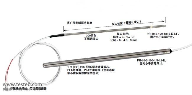 PR-10-2-100-1/4-12-E RTD探針,導致2型(3線配置),1/4“直徑。不銹鋼護套,12”長36“PFA絕緣導線剝完終止
