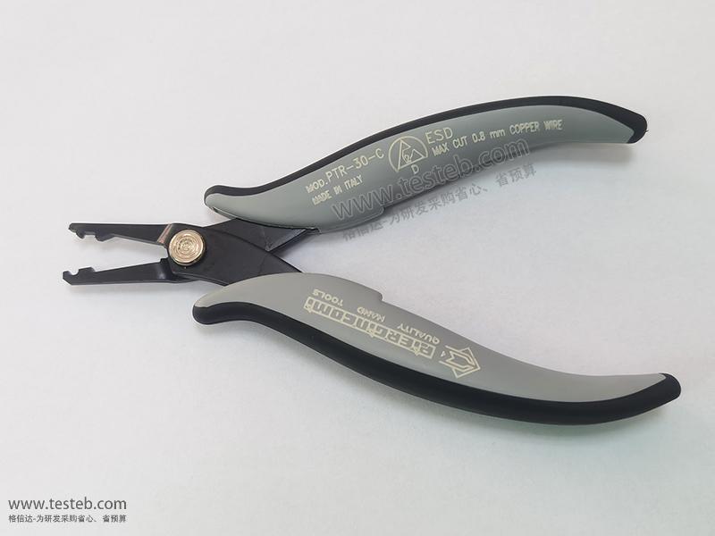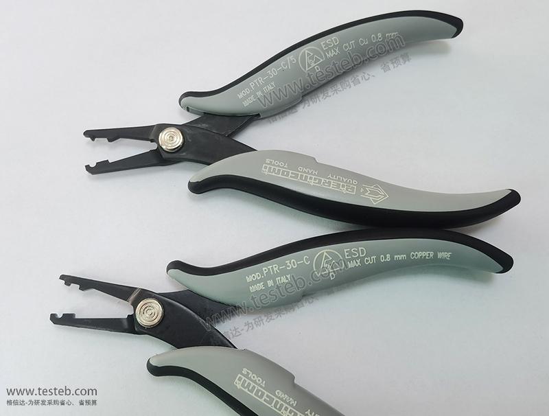 皮爾杰克Piergiacomi PTR-30-C成型鉗用于將二極管電阻電容引腳打K形使其符合減震消除應力要求,并剪切多余長度折彎后端保留3mm用于PCB插件焊錫,鉗口采用工具鋼打磨,灰色手柄ESD防靜電安全,另有PTR-30C/5型號打K型折彎并剪腳保留4mm。