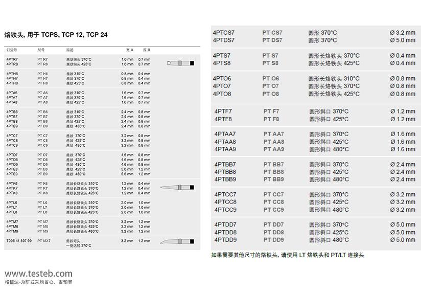 | 4PTF7 | PT F7 | 圓形斜口 370℃ | Ø 1.2 mm | |
