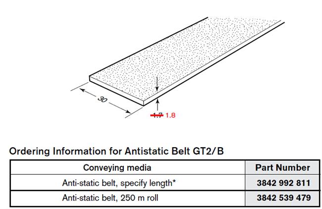 Rexroth 3842539479:Anti-static belt防靜電皮帶0613029074W3, 250m roll固定長度。