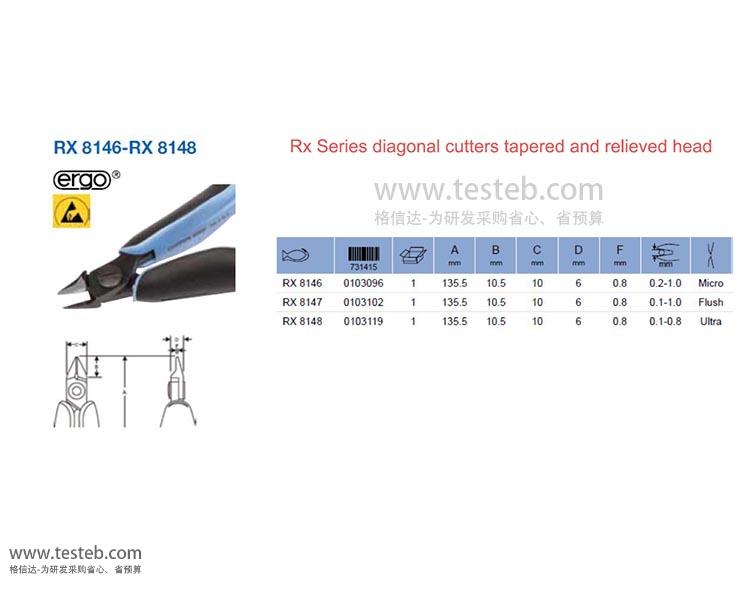 | RX 8160大直徑導線剪鉗 | 0.4-2.0 mm | Micro半齊平 | 16 mm | 16 mm | 147.0 mm,97 g |