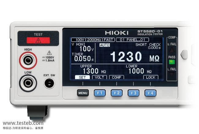 日本日置HIOKI ST5520電阻測試儀可通過施加25V~1000V直流電壓測量電池絕緣電阻,具有高速自動放電功能,快速結束電池放電,最快50ms的快速判定,可滿足生產線上快節奏要求的產品。