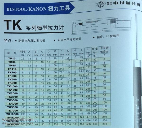 | TK3000g | 50g | TK3000CN | 50cN | 285mm | 85g | 50g |