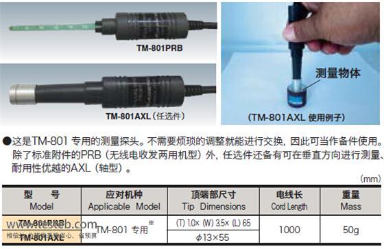 | 附件 | TM-801PRB徑向探頭、電池、攜帶袋 | |||||||||||||||||||||||||